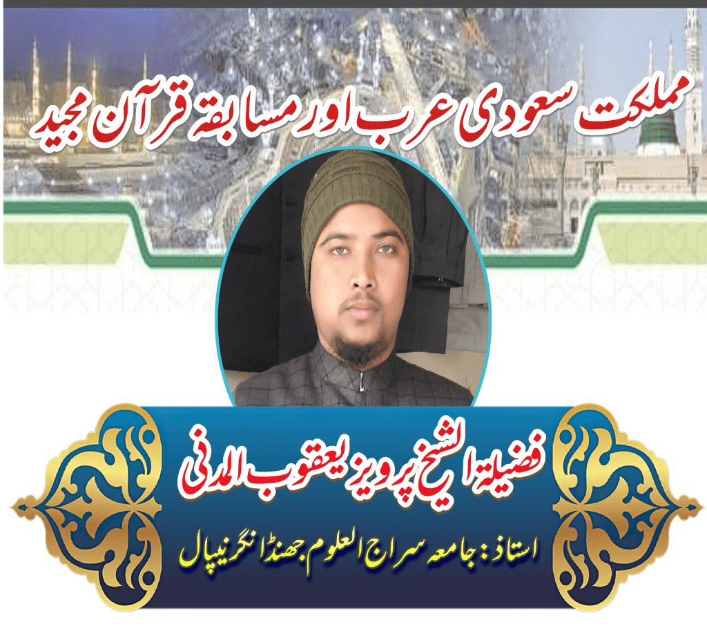 البتہ واضح رہے کہ شہر مکہ مکرمہ کے میں منعقد ہونے والے اس مسابقہ میں ہمارے ملک نیپال سے بھی ایک خوش نصیب طالب کو شرکت کا موقعہ ملا ہے۔ جس کے لئے ہم اپنی اور اپنے اعزاء و اقرباء احباب و دین پسند دوستوں نیز اپنے ملک کے علماء و ذمہ داران کی جانب سے مملکت توحید کے حکام اور باشندگان کی جناب میں شکر بجا لاتے ہیں اور پرخلوص ہدیہ تبریک پیش کرتے ہیں اور مسابقہ کی بھرپور کامیابی کے لئے دست بدعا ہیں۔ اللہ تعالیٰ مملکت توحید کی جملہ خدمات کو شرف قبولیت بخشے۔ اور مملکت کو ہرگام چھوٹے بڑے تمام فتنوں سے مامون و محفوظ رکھے۔ آمین