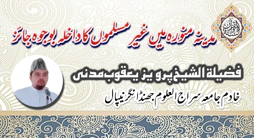 اسی طرح صحیح بخاری کی روایت کے مطابق امیر یمامہ ثمامہ بن اثال رضی اللہ عنہ کو مسجد نبوی کے ستونوں میں باندھا جانا (صحیح بخاری: ٤٣٧٢) اور مسند احمد بن حنبل کی روایت کے مطابق جسے علامہ البانی رحمہ اللہ نے صحیح کہا ہے صحابي رسول جناب جبير بن مطعم كا حالت شرک مغرب کی نماز سے قبل مسجد میں داخل ہونا (مسند احمد: ١٦٩٦٦) اسی طرح نجران سے نصاری کا وفد نبی اکرم صلی اللہ علیہ وسلم سے مباھلہ کے لئے مدینہ آنا یہودیوں کے بعض قبائل بنو قریظہ بنو قینقاع اور بنو نضیر وغیرہ کا مدینہ منورہ میں سکونت اختیار کرنا نیز عہد صدیقی، عہد فاروقی، عہد عثمانی، حتی کہ چوتھے خلیفہ جناب علی ابن ابی طالب رضی اللہ عنہ کے عہد مبارک کے ابتدائی ایام میں مدینہ منورہ کے دار الخلافة برقرار رہنے کی مدت تک وفود اور سفراء کا مدینہ آمد و رفت وغیرہ اس بات کے بین ثبوت ہیں کہ غیر مسلمین تجارت، اور ضرورت کے وقت امن اور صلح کی حالت میں مدینہ منورہ میں داخل ہوسکتے ہیں البتہ وہاں مستقل سکونت اختیار کرنے سے اسلامی تعلیمات میں منع ہے۔