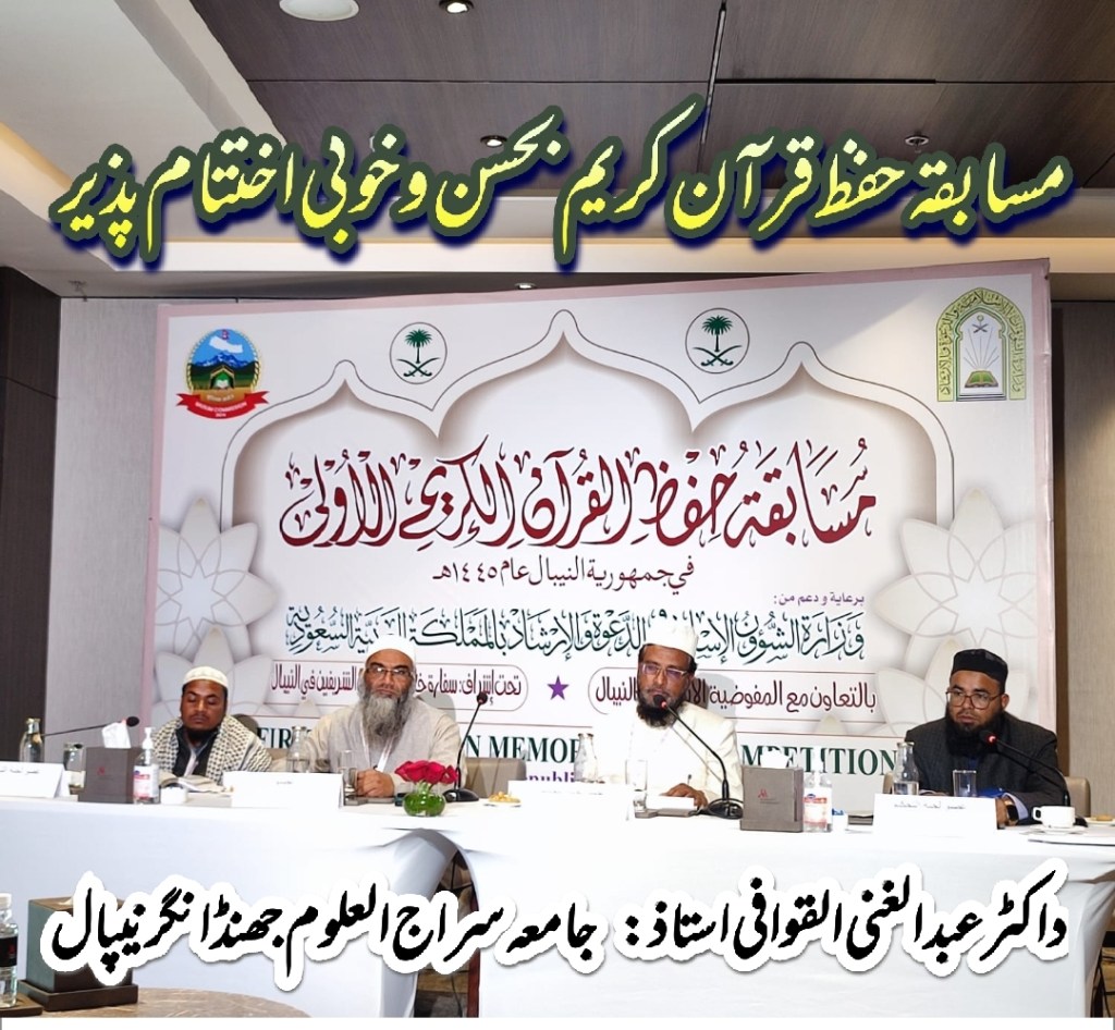 اس طرح اب مسابقہ کے تمام زمروں کے مشارکین کے حاصل شدہ نمبرات اور پوزیشن آیوگ کے پاس ہیں، بہت ممکن ہے کہ آئندہ کل یعنی 12 فروری کو مسلم آیوگ کی ویبسائٹ پر چاروں زمروں میں پوزیشن پانے والے خوش نصیبوں کے نام کا اعلان کر دیا جائے۔ مسابقہ میں شامل تمام مشارکین، ان کے گارجین اور دور دراز سے تشریف لانے والے سبھی مہمانوں کی محنتوں کو اللہ شرف قبولیت بخشے، اس مسابقہ کو ملک وملت کے لئے مفید، بار آور اور نفع بخش بنائے۔ تمام اہل اسلام کو اس قرآن کریم کی عظمت اور تقدس کا ادراک کرنے اور اس کی تعلیمات پر عمل پیرا ہونے والا بنائے۔ اس مقدس کتاب کی محبت ہمارے دلوں میں پیدا کردے، اسے روز قیامت ہمارے حق میں شفاعت کرنے والا بنائے، اس کی برکت سے اللہ رب العالمین قوم مسلم پر آنے والی آزمائشوں کو ٹال دے، افق سے جھانکنے والے خطرات سے امت کو امن نصیب فرمائے۔ اس مسابقہ کے انعقاد میں جن جن جہات نے اپنا کردار ادا کیا ہے اللہ انہیں اس کا اجر جزیل عطا کرے، خاص طور پر مملکت سعودی عرب جس نے اسلام اور مسلمانوں کی خدمت کو اپنے لئے باعث شرف سمجھتے ہوئے اسے اپنی پہچان بنا لیا ہے اللہ ان کی ہمہ جہت خدمات پر انہیں بہترین بدلہ عطا فرمائے، توحید پر قائم اس اسلامی مملکت کی ہر حاسد کے حسد اور ہر دشمن کے مکر سے حفاظت فرمائے، انہیں مزید در مزید قرآن کریم اور سنت نبویہ کی نشر واشاعت کی توفیق ارزانی بخشے۔ ایں دعا از من وجملہ جہاں آمین باد۔