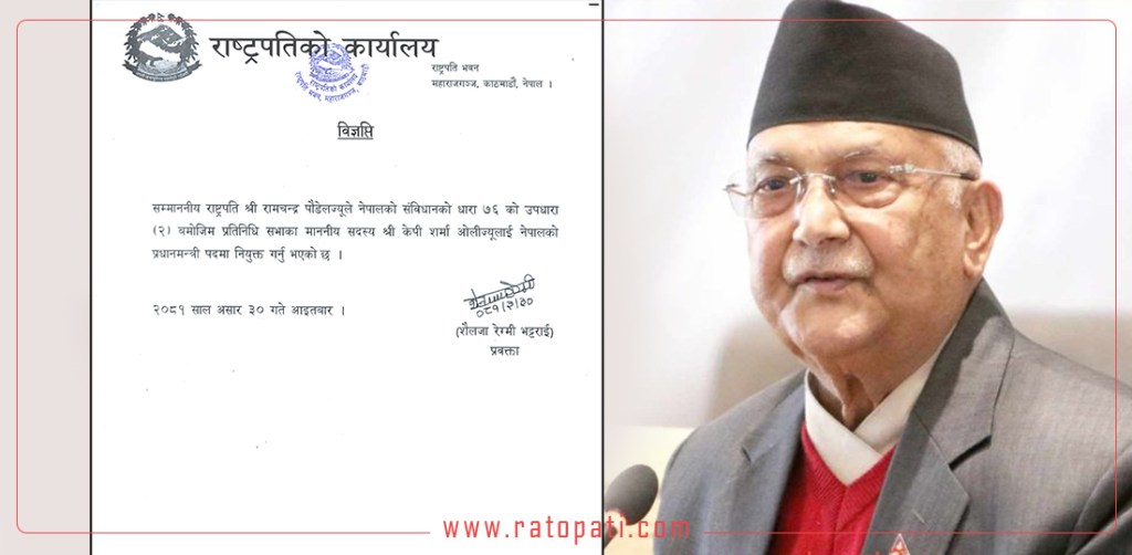 صدر پوڈل کی جانب سے آئین کے آرٹیکل 76 (2) کے مطابق نئی حکومت کی تشکیل کا مطالبہ کرنے کے بعد اولی کی قیادت میں حکومت بنانے کا راستہ کھل گیا۔