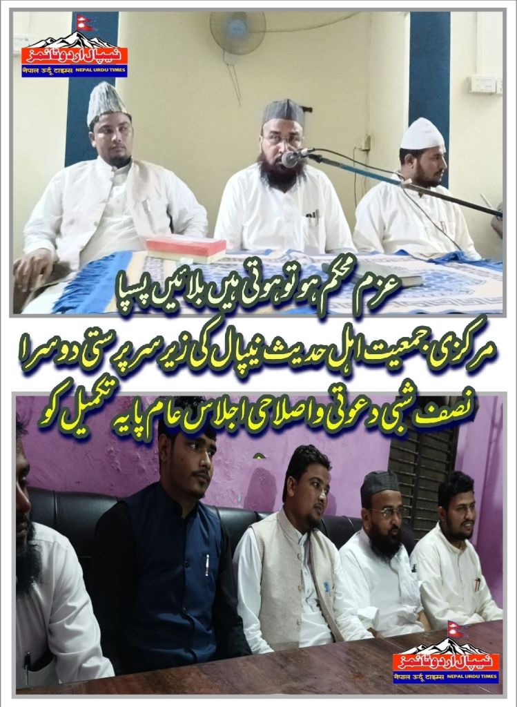 اللہ کا رب العالمین کا بے پایاں شکرو احسان ہے کہ اس نے مرکزی جمعیت اہل حدیث نیپال کے باوقار ذمہ داران کو توفیق دی جنہوں نے ملک نیپال کے اندر دعوت و تبلیغ کا نمایاں سلسلہ شروع کیا۔ لیجناب اور مرکزی جمعیت اہل حدیث نیپال کی زیر سرپرستی دوسرا نصف شبی دعوتی و اصلاحی اجلاس عام کا انعقاد ضلع روپندیہی کے ایک گاؤں موضع رمواپور میں بتاریخ 7 اکتوبر 2024 بروز سوموار کیا۔ واضح رہے کہ اس اصلاحی پروگرام کے انتظام و انصرام کی ذمہ داری مولانا محمد جعفر نذیری ناظم عمومی ضلعی جمعیت اہل حدیث روپندیہی کے اشارے اور خاکسار عابد علی جامعی کے تعاون سے عالی جناب عبدالمعید عرف گڈو بابو لمبنی سانسکرتک نگر پالیکا وارڈ نمبر 6 تنہوا روپندیہی نیپال نے کیا اور پروگرام کو ہر اعتبار سے کامیاب بنایا۔ پروگرام وقت مقررہ پر شروع ہوا، مذکورہ گاؤں کی ایک طالبہ عزیزہ نزھت خاتون نے تلاوت کلام باری سے بزم کی شروعات کی پہر حمد باری تعالیٰ عزیزہ ھاجرہ خاتون اور نعت رسول عزیزہ صاحبہ خاتون نے پیش کیا۔