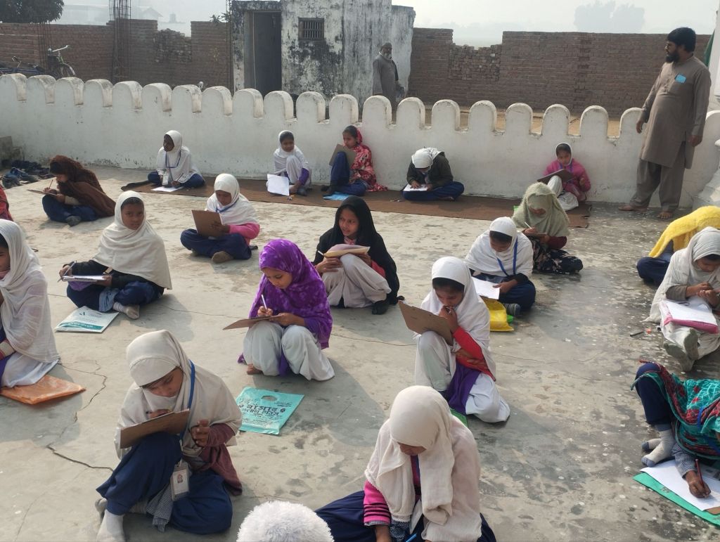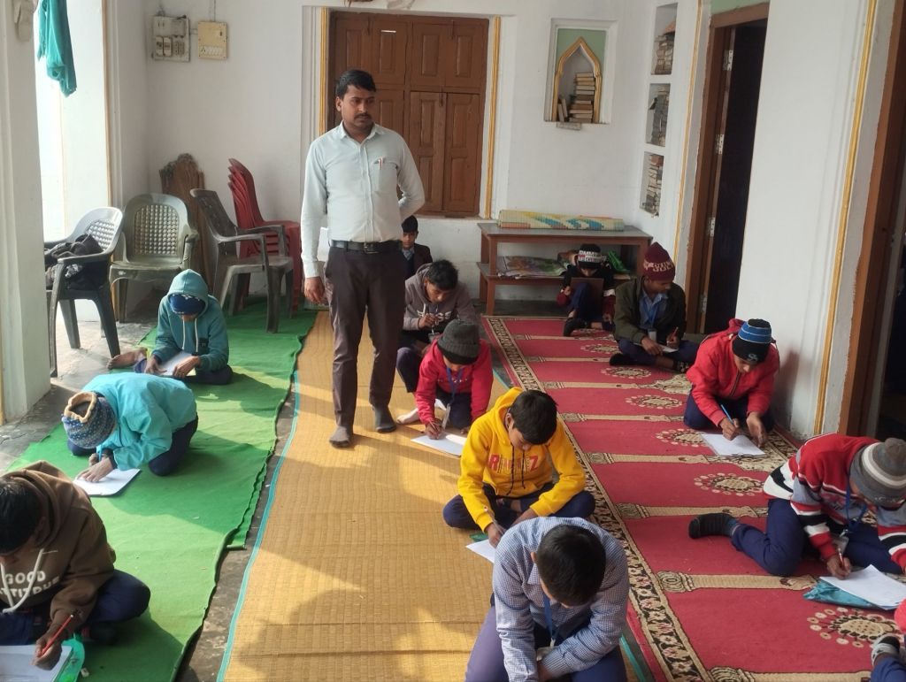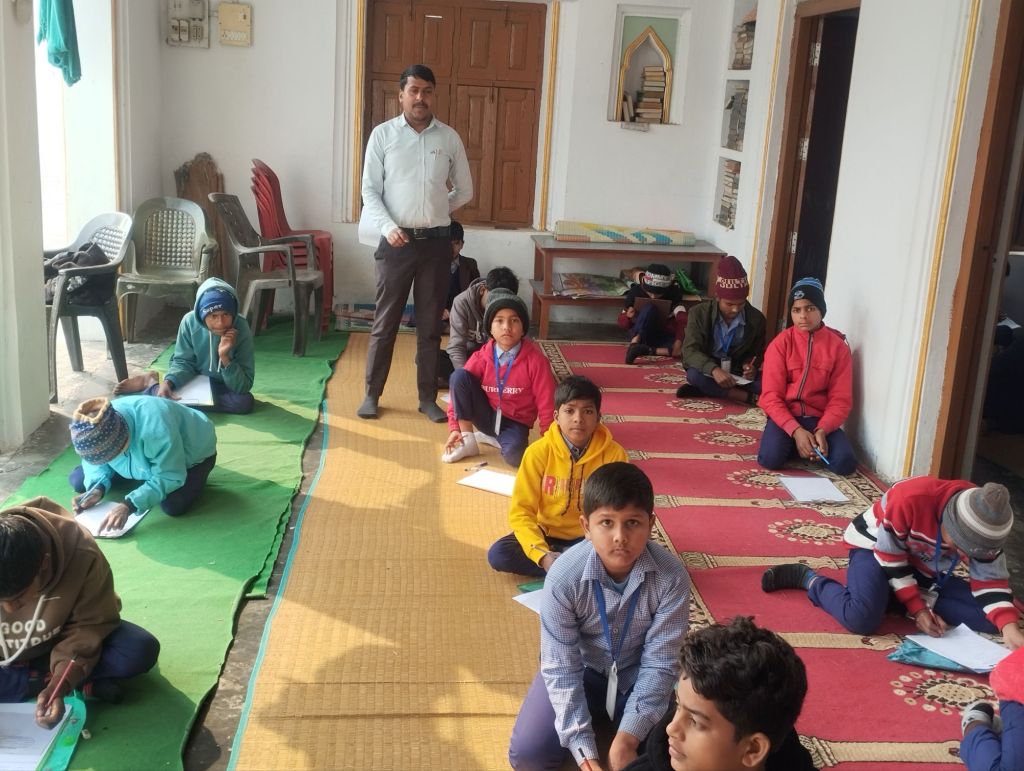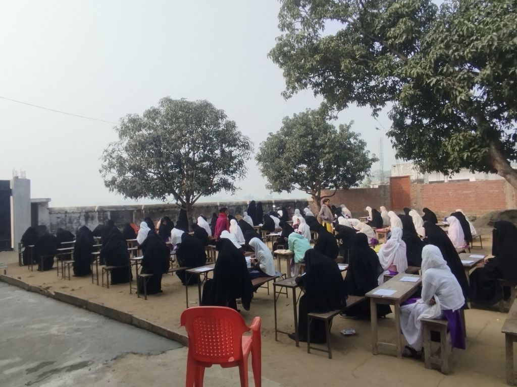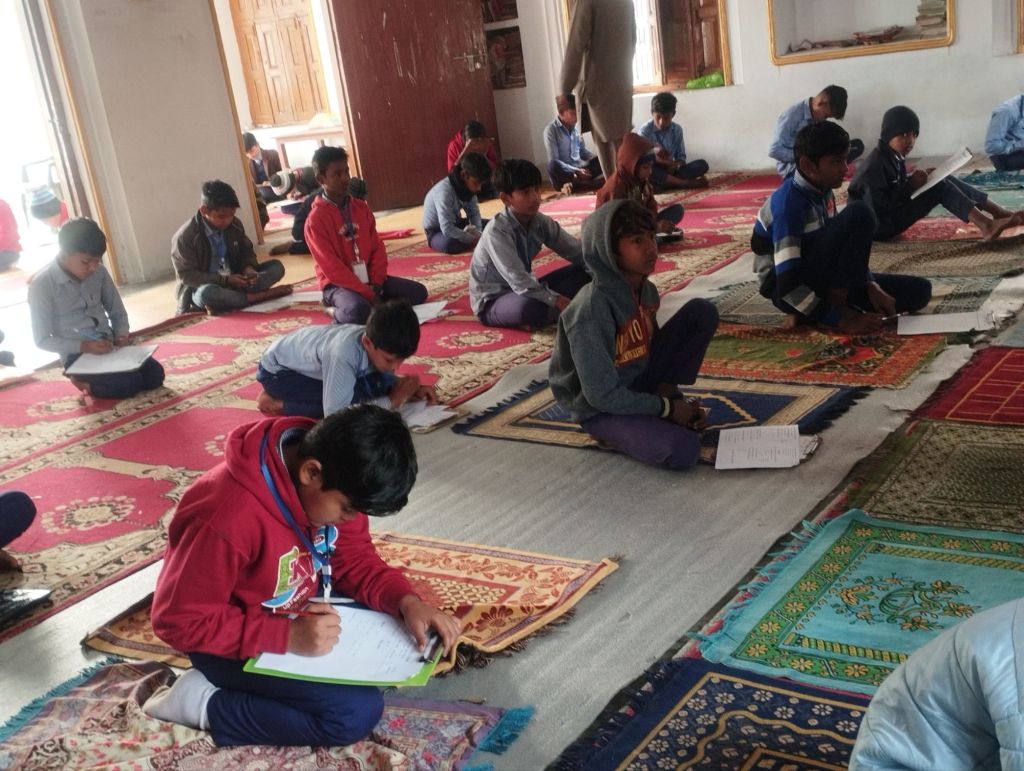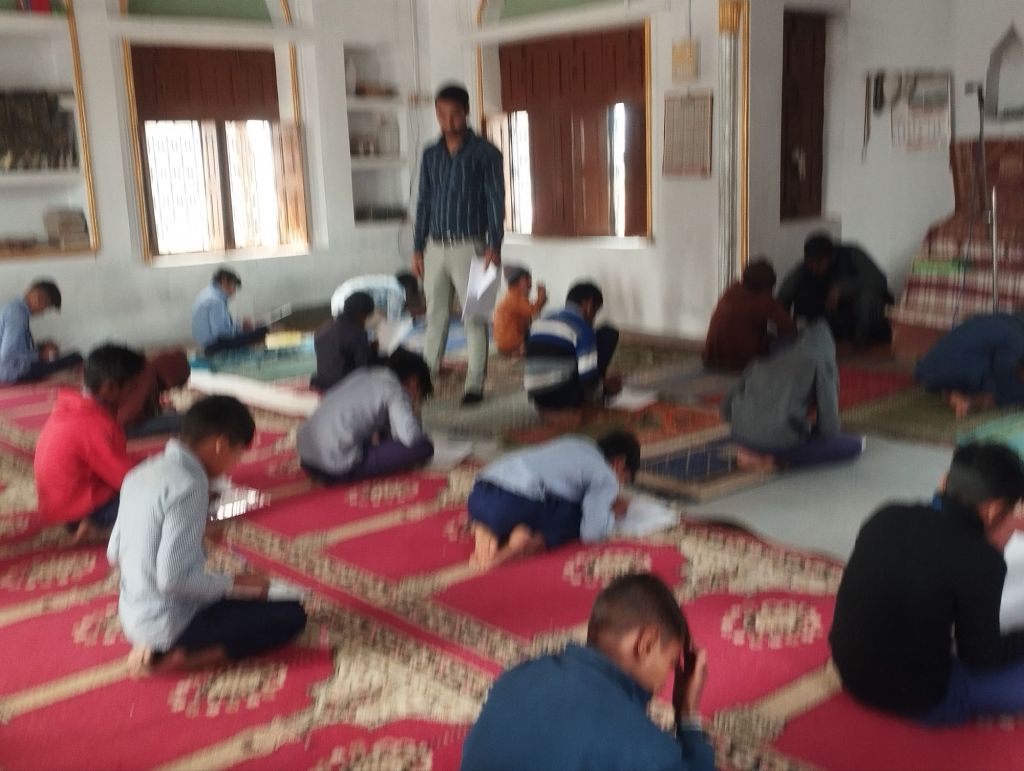 اعدادیہ سے لیکر جماعت خامسہ کے بچے اور بچیاں پرچہ سے امتحان دے رہےہیں